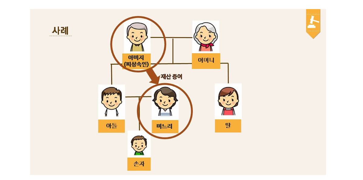 며느리에게 재산을 주고 싶어서 주는 경우도 있을 것이고, 자신의 사후에 있을 상속 분쟁을 예방하기 위해 상속인이 아닌 며느리에게 재산을 증여했을 수도 있을 것입니다.