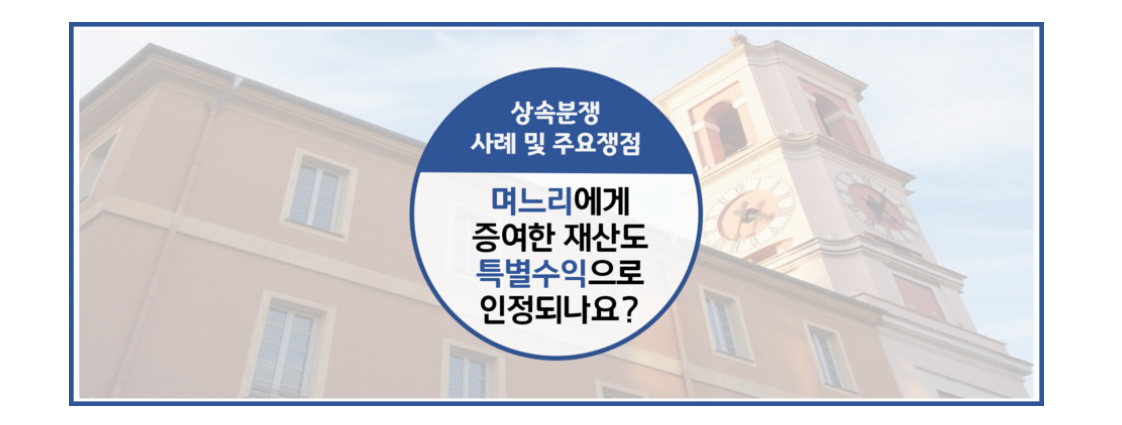 이렇듯 돌아가신 아버지가 아들이 아닌 며느리에게 생전에 재산을 증여한 경우, 며느리에게 증여한 재산도 그 아들의 특별수익이라고 볼 수 있을지 문제가 됩니다.
