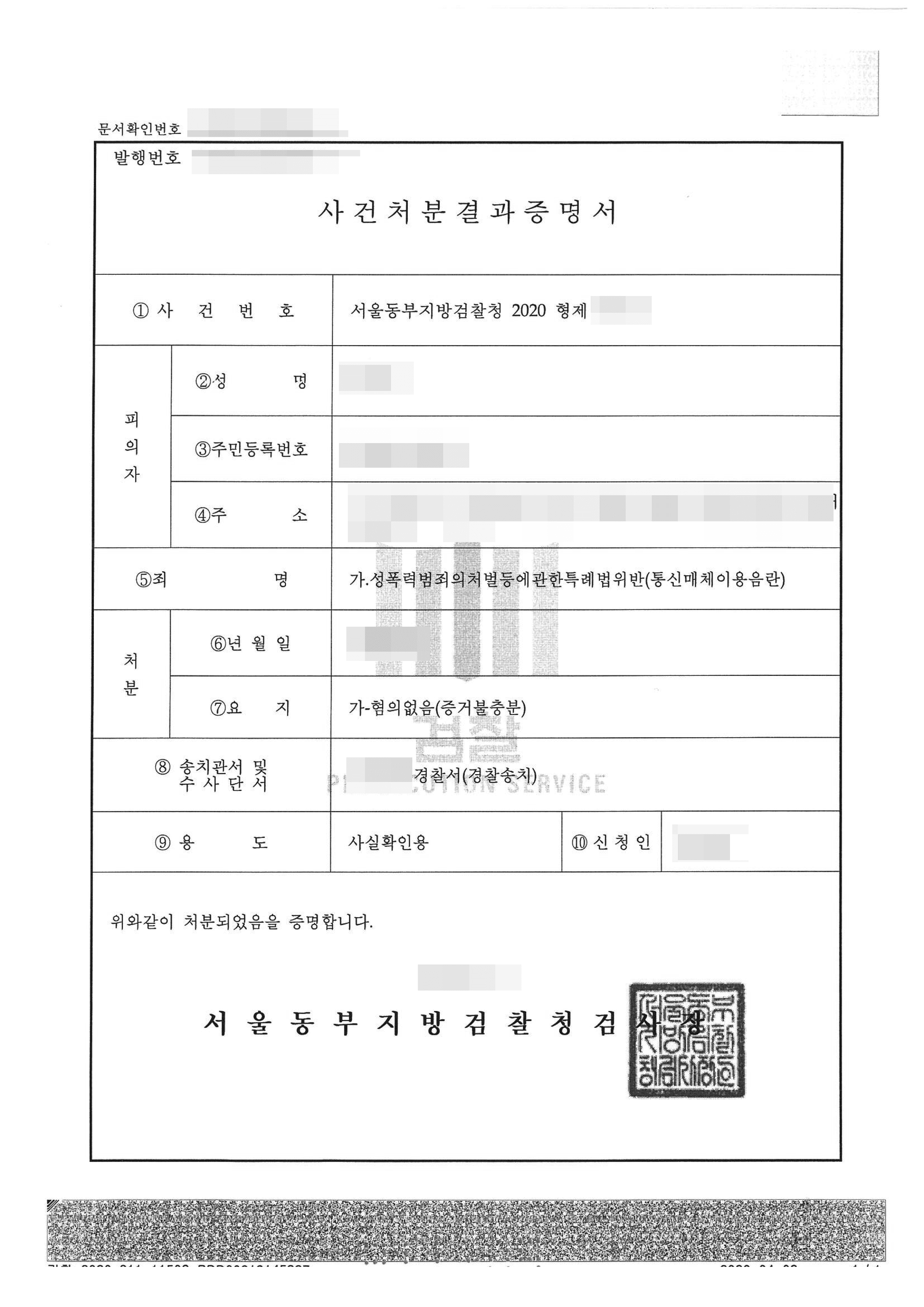 이러한 본변호인의 조력의 결과, 검찰은 의뢰인에게 불기소처분(혐의없음) 결정을 내렸습니다.