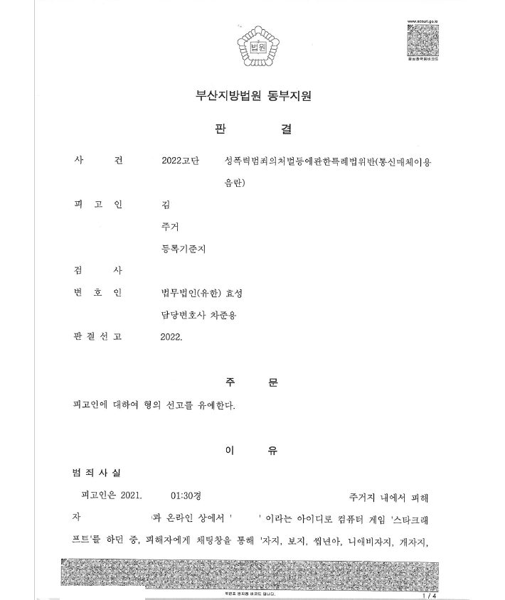 이 사건에서도 의뢰인은 게임을 하다가 피해자에게 채팅으로 성적인 욕설을 하였고 고소당하여 즉시 저를 찾아와 의뢰하였습니다.