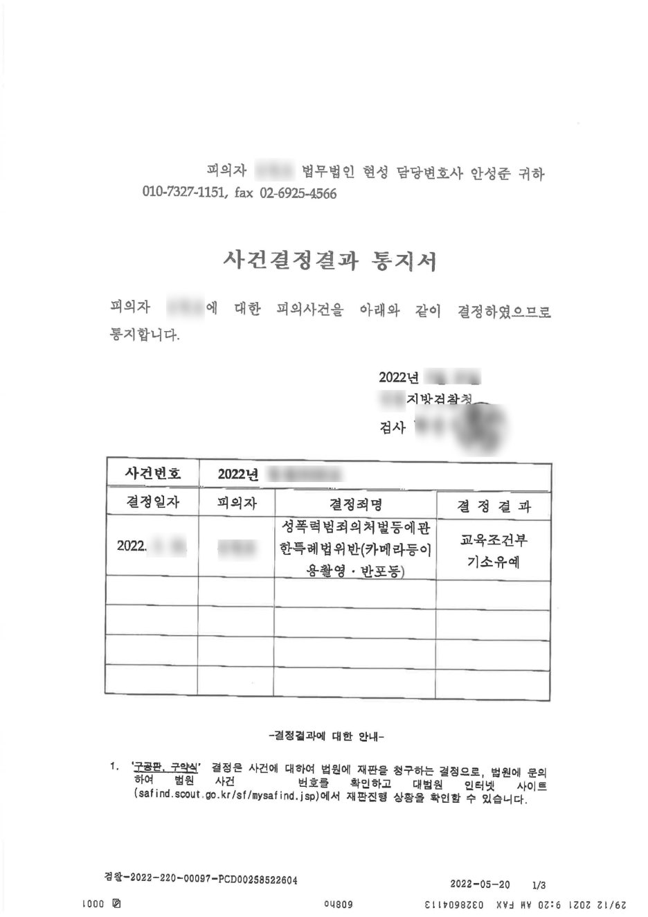 교육이수 조건부 기소유예 처분을 받을 수 있었습니다.