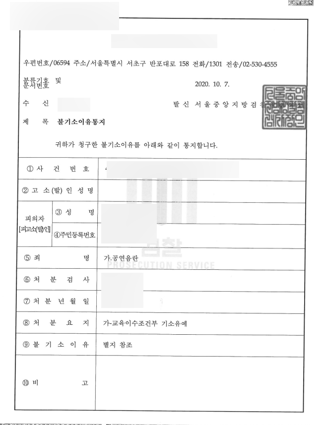 내역 등을 토대로 피의자에 대한 혐의 없음을 주장하였습니다.