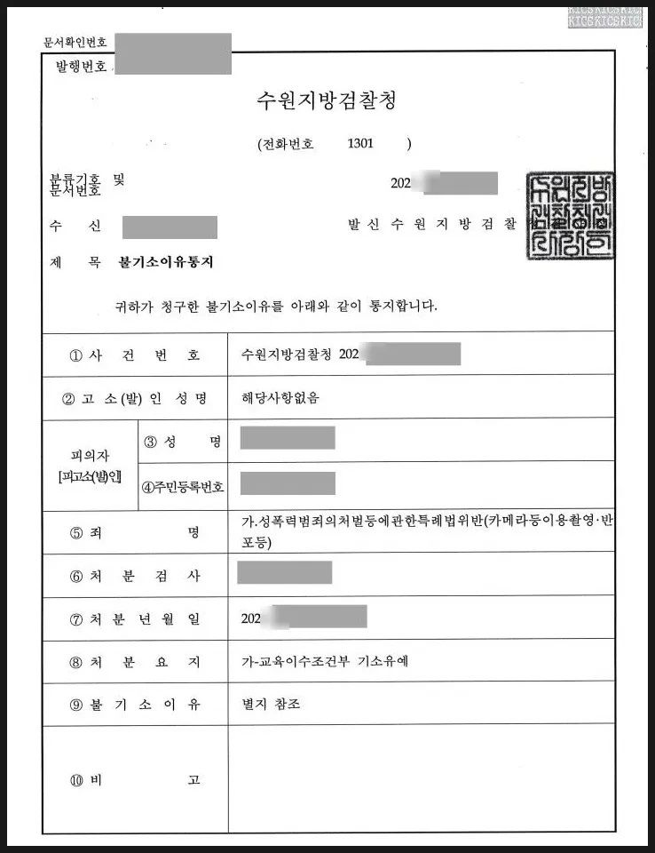 ▶ 사건의 결과 → [ 카메라등이용촬영죄 ‘교육이수조건부 기소유예’ ]