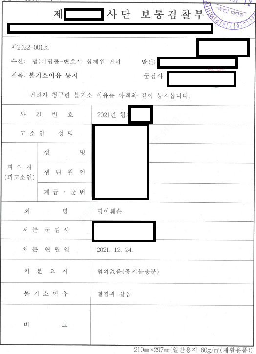 이런 취지로 의견서를 작성하여 혐의없음 결정을 받게 되었습니다.
