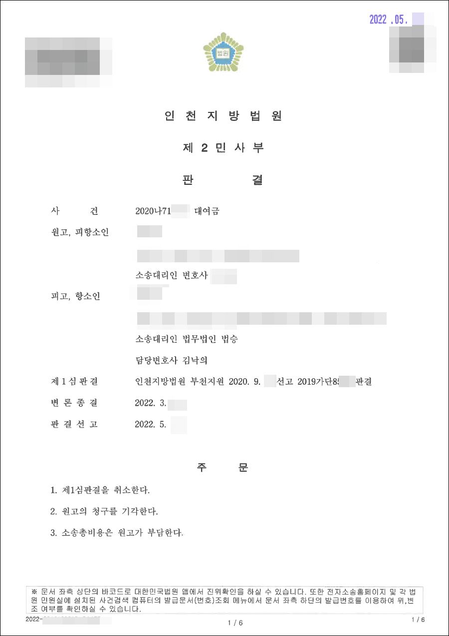 제1심에서 피고의 대리인이었던 법무법인 법승 김낙의 변호사는 원고 당사자를 신문하였고 원고의 진술은 대여관계를 입증하기에 심히 부족하였지만 예상치 못하게 피고는 패소하였습니다. 법무법인 법승 김낙의 변호사는 납득하기 어려운 1심 판결을 받아들이기 어려워 피고에게 먼저 항소를 적극 제안하였습니다.
