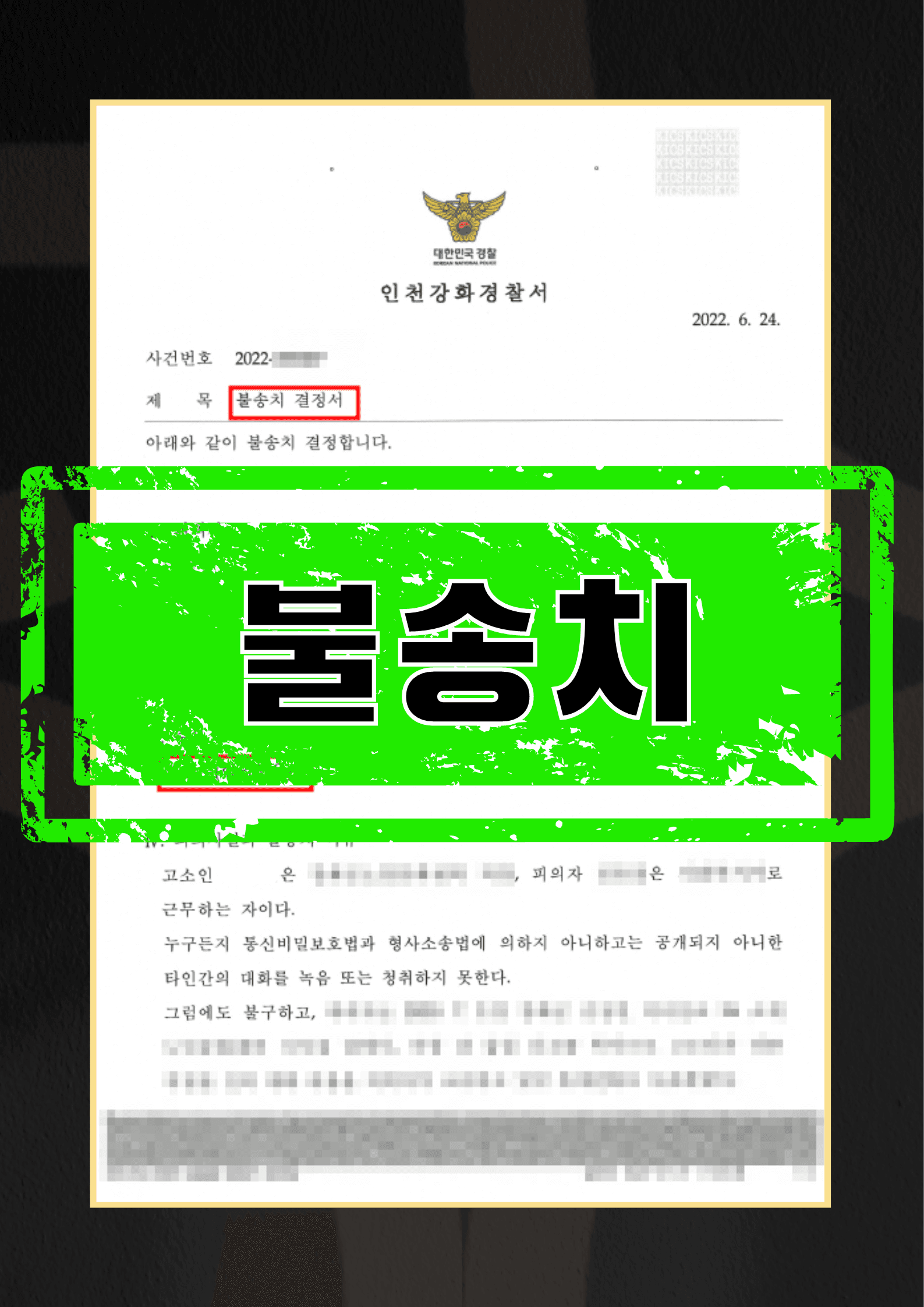 그 결과 피의자의 통신비밀보호법위반혐의는 경찰단계에서 혐의없음(증거불충분) 처분을 받았고, 이후에도 저희 온강과 함께 고소인을 무고로 고소한 뒤 직장 내 괴롭힘을 끝마치고 평범한 일상으로 돌아가고자 노력하고 있습니다.