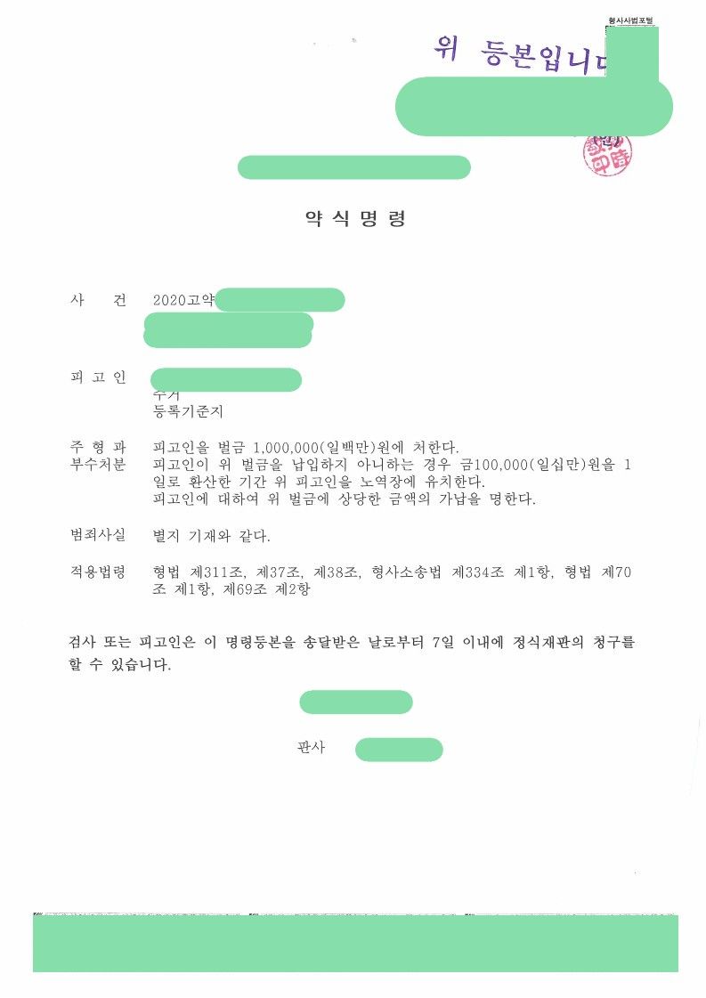 (벌금형도 명백히 빨간줄, 즉 전과에 해당하여 여러 불이익이 있습니다.)