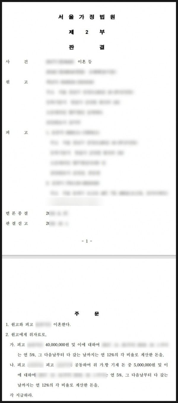 그리고 B 씨의 유책성이 훨씬 크다는 점을 이유로, B 씨에게는 위자료 4,000만 원을 인정하면서도 A 씨에게는 위자료 500만 원을 지급하라는 판결을 내려주었습니다.