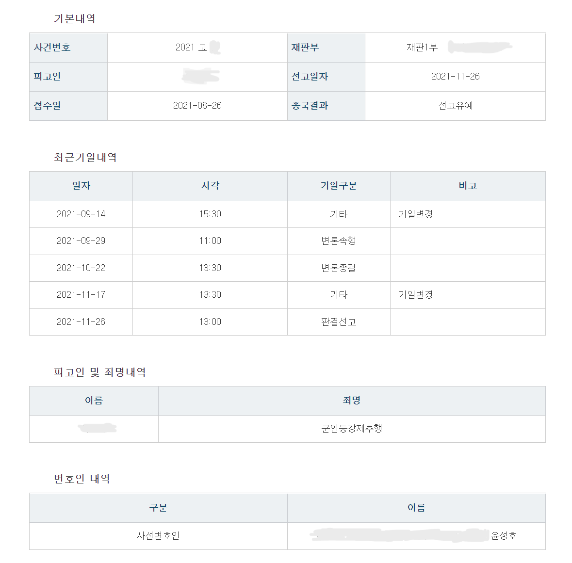 위와 같은 윤성호 변호사의 적극적인 주장을 받아들여 군사법원은 의뢰인에게 선고유예 판결을 내렸고, 이로써 의뢰인은 군인등강제추행죄(성범죄)의 전과자가 될 뻔한 위기에서 벗어날 수 있었습니다. 선고유예를 받고 2년이 지나게 되면 면소가 되기 때문에 아무런 전과가 남지 않기 때문입니다.