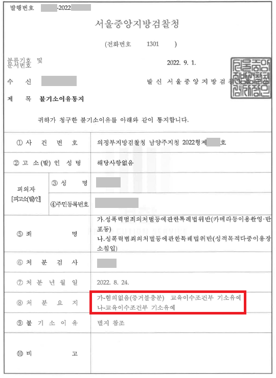 - 화장실 침입 등 일부 명백한 혐의 부분에 대해서도 양형 자료를 잘 제출하여 기소유예를 받음