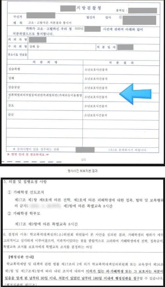 그 결과, 본 형사사건은 소년부로 이관되었고 B 군에게는 보호처분이 내려졌습니다. 그리고 이와 별개로 B 군은 학폭위원회로부터 ‘전학처분’을 받았습니다.