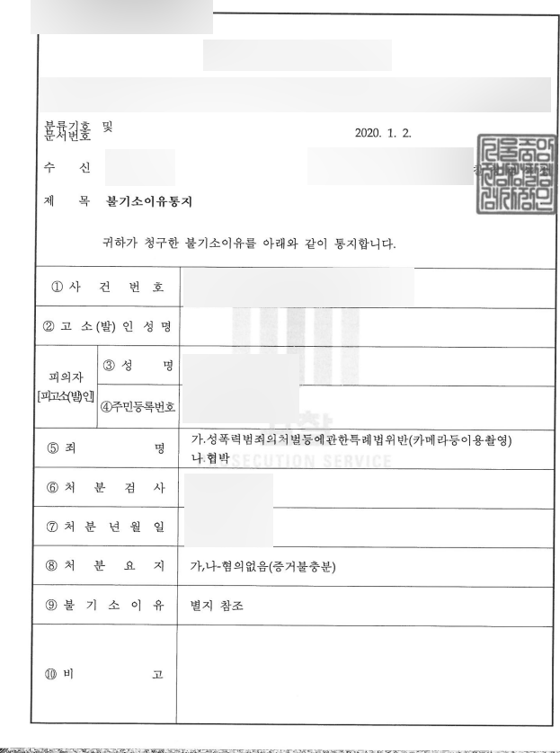 카메라등이용촬영죄 혐의로 고소되었습니다.