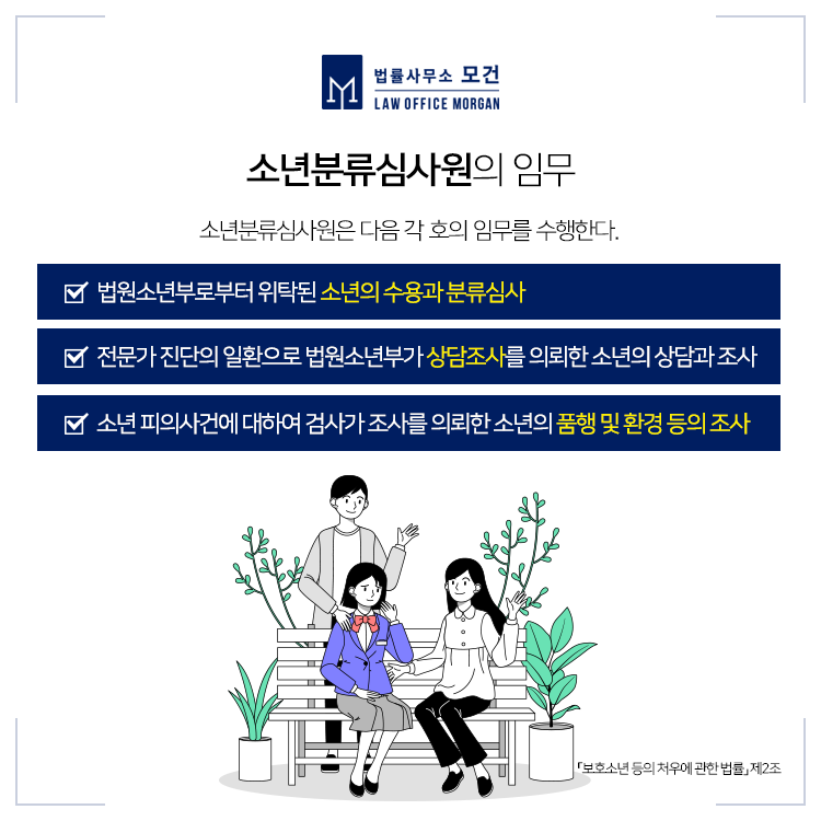 이에 부모님과 함께 심리기일에 출석하였다가 집에 돌아가지 못하고 곧바로 소년분류심사원으로 이동하게 됩니다. 따라서 경미한 소년보호처분을 기대하고 출석하였다가 뒤늦게 사안의 심각성을 느끼시는 부모님들도 많습니다.