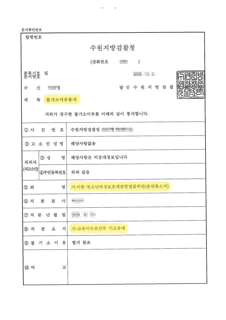 "n번방" 및 "박사방"이 심각한 사회적 문제로 대두되면서 조금이라도 관련이 있거나 유사한 사건의 경우 피의자에 대한 엄벌이 예상되는 상황이었습니다. 이 사건의 처분 검사님께서도 “‘n번방" 사건 이후 단순 소지죄에 대해서도 무조건 불구속구공판 처분하고 있다”고 까지 공언할 정도로 심각한 사안이었으나, 저희 법인이 의뢰인의 이익의 위하여 일반 아동청소년성착취물 구매 및 소지 사건과 이 사건의 차이점 등에 관하여 적극 변론한 결과 의뢰인께서 교육이수조건부 기소유예의 불기소처분을 받을 수 있었습니다.