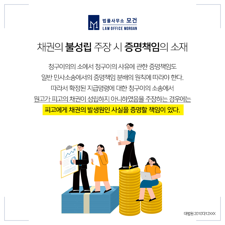 이에 C사는 A씨를 상대로 지급명령 정본에 의한 압류·추심명령을 신청하였고, 이를 알게된 A씨는 청구이의의 소를 제기하였습니다. A씨는 'B사로부터 700만원을 차용한 사실은 없고, 그 돈은 아내의 오빠(D)가 자신의 계좌를 이용하여 받은 업무추진비 명목'이라고 주장했습니다.