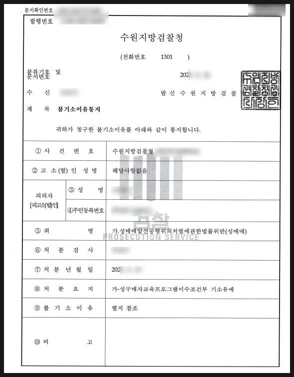◆ 성매수로 피의자로 소환되었으나, 기소유예 처분을 받아 처벌을 받지 않은 사례입니다.