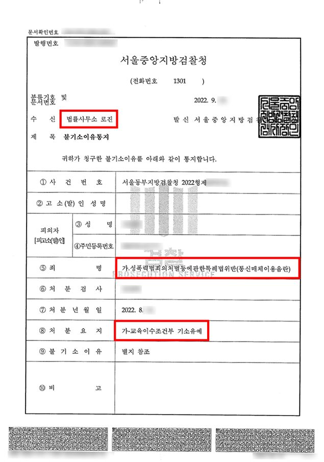 검찰은 로진의 주장을 모두 인정하여 피해자 합의 없이 기소유예로 사건을 종결하였습니다. 의뢰인은 로진의 조력으로 빠르게 형사적 처벌 위기에서 벗어날 수 있게 되었습니다. 통신매체이용음란죄 사건은 일상에서 빈번하게 발생하는 성범죄입니다. 법률적 처벌 위기의 상황이라면 사건 초기 승소경험이 많은 형사전문변호사의 조력을 통하여 어렵지 않게 사안을 해결하시기 바랍니다.