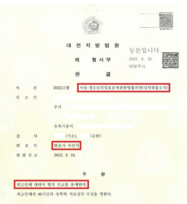 [관련 법령: 아동·청소년의 성보호에 관한 법률]
