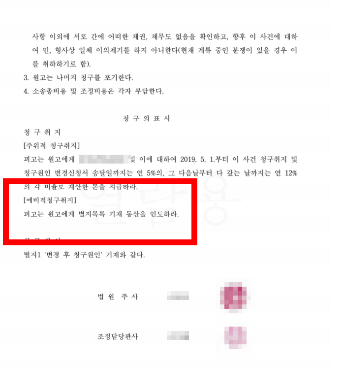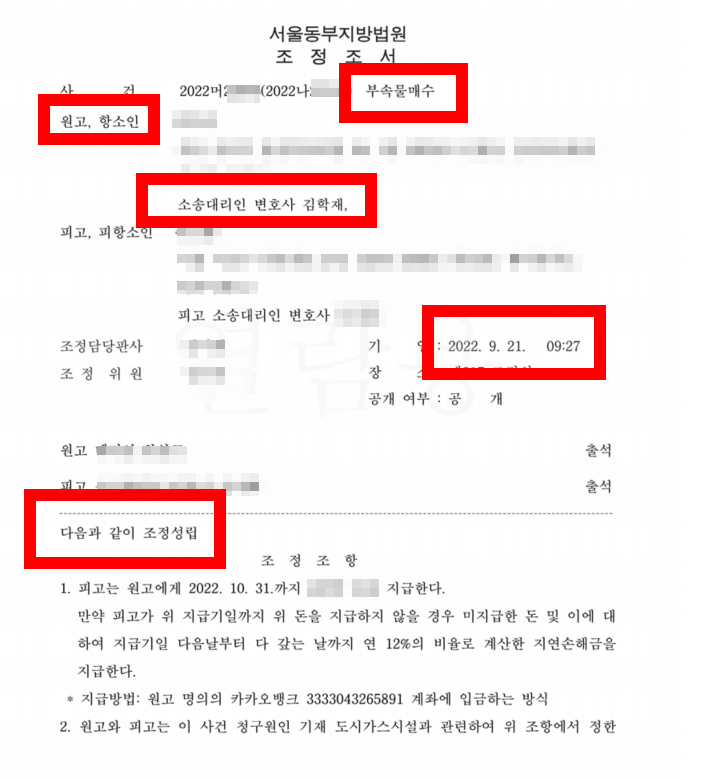 재판부는 의뢰인분이 원고의 주장이 타당성이 있으며, 피고도 협의하지 않을 수 없다고 생각하시고, 조정기일을 정해주셨습니다.