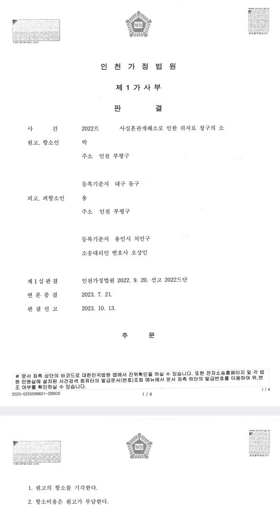본 변호인의 이러한 주장을 재판부에서 모두 받아들여 원고의 청구는 모두 기각되었고, 피고가 전부 승소하였습니다.