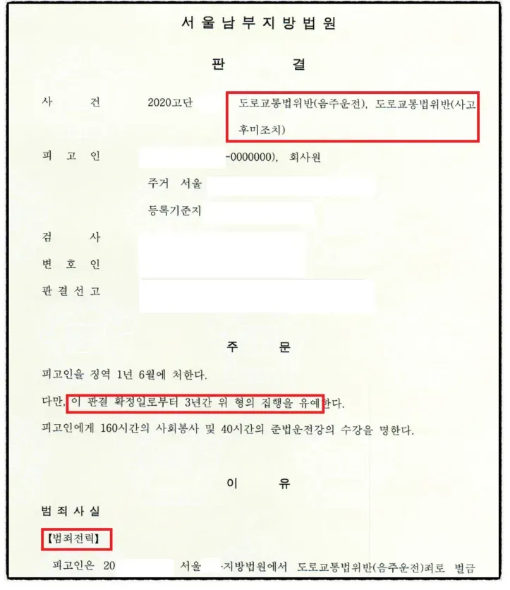 4. 도로교통법위반 집행유예 판결