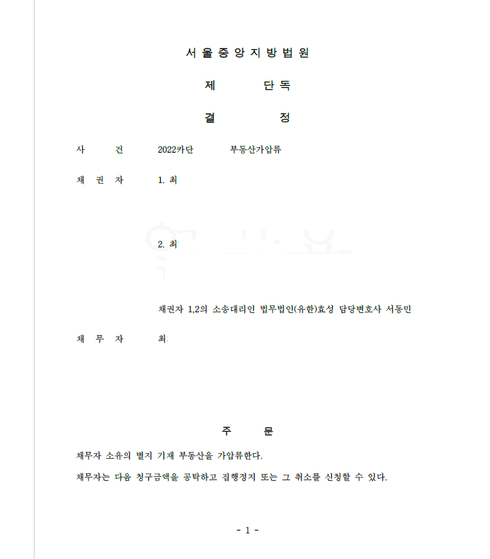의뢰인들은 피고에게 유류분반환청구소송을 제기할 예정인데 피고가 유일한 재산인 부동산을 제3자에게 매도하기로 하고 매매계약서를 작성했다는 소식을 듣고 급하게 저를 찾아와 본안소송 및 부동산가압류를 의뢰하였습니다.