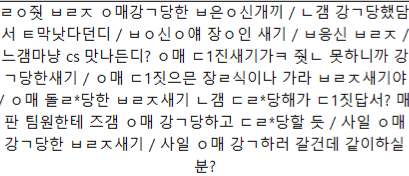 ㅂ50은 50이 쉰이라서 병신이라는 의미입니다. 처음에는 해독이 안 되었었는데 재밌다는 생각이 들었습니다. 아래는 엄마 몸파는 창녀라는 의미입니다.
