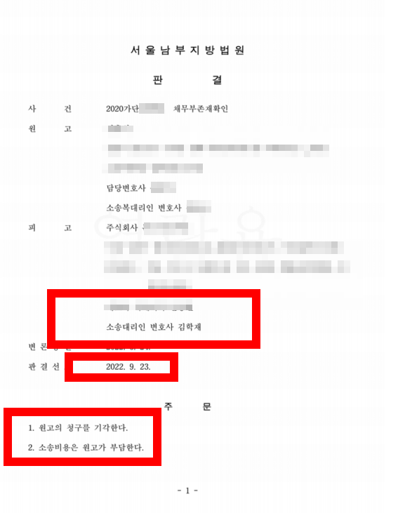 채무 부존재 확인 소송, 채무부존재소송 전부 승소하였습니다!