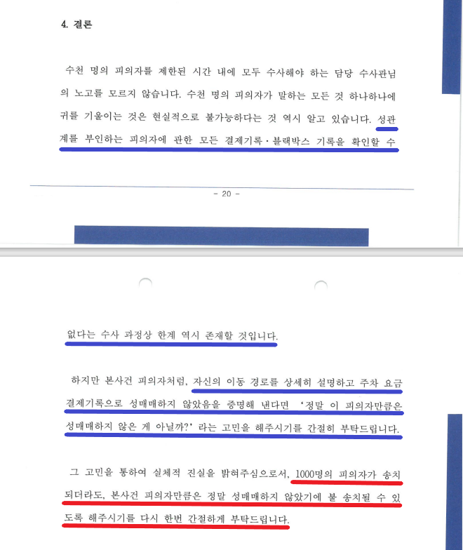 참고로 조사 참석 과정에서 문의한 결과 - 수사관님은 "1000명이 넘는 피의자 중 성관계는 하지 않았다고 주장하는 사람들이 있었다. 하지만 모두 검찰로 송치하였다"라고 말하였습니다. 그만큼 장부에 일단 착한놈이라 기재되어 있으면, 아무리 결백을 주장해도 믿어주지 않는 상황이었습니다.