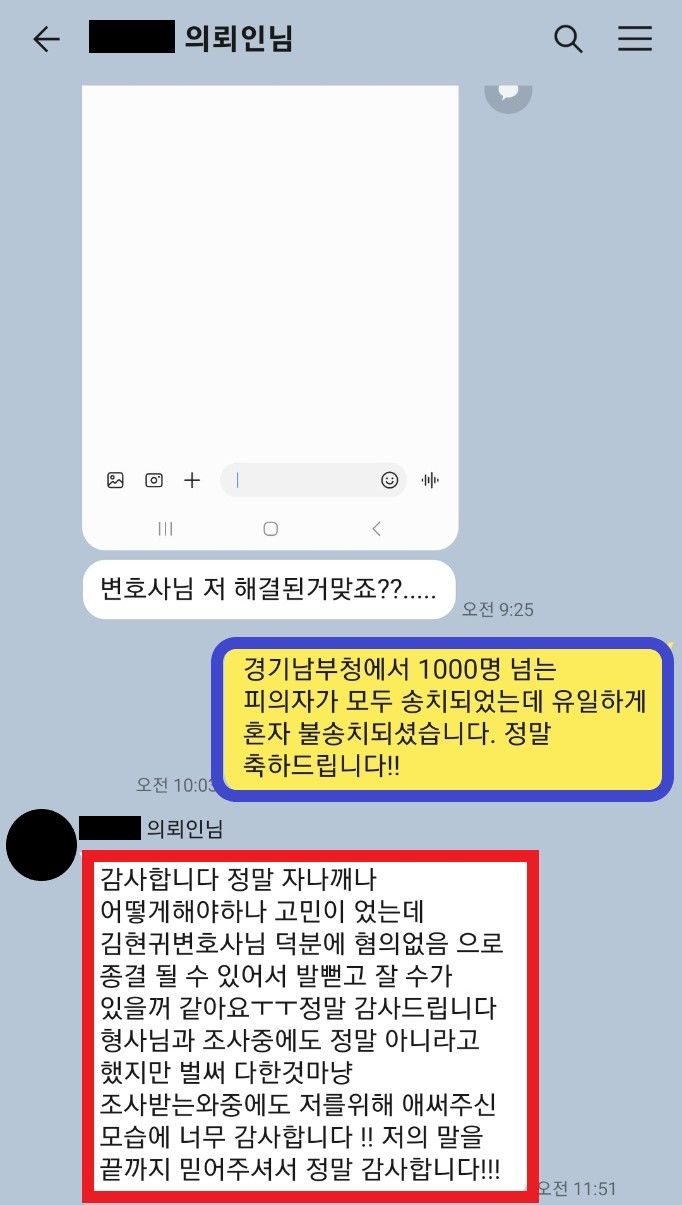 3. 법적 조력 결과 - 천 명이 넘는 피의자 중 유일하게 불송치 종결!