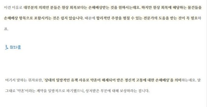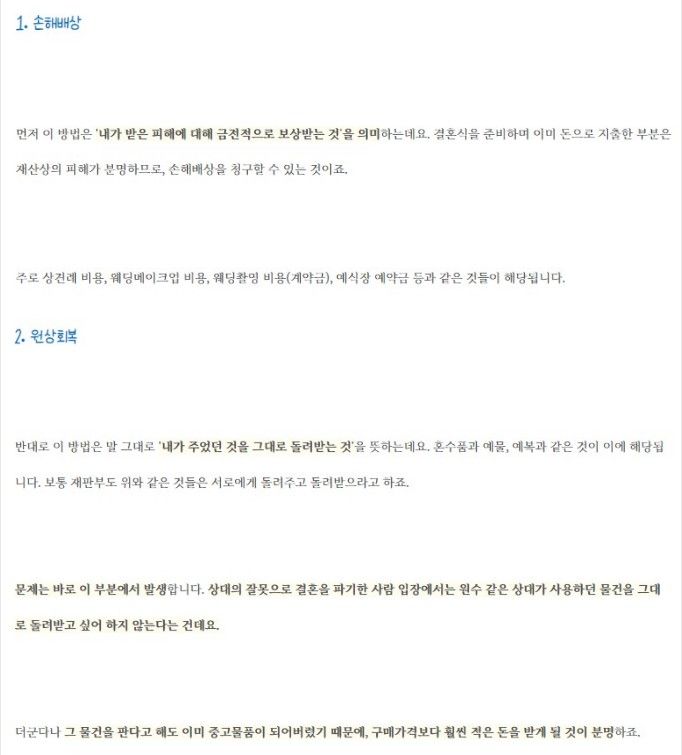 약혼해제로 인한 손해배상을 청구할 때 중요한 것은 원상회복에 해당하는 물건들을 손해배상 항목으로 포함시키는 겁니다.