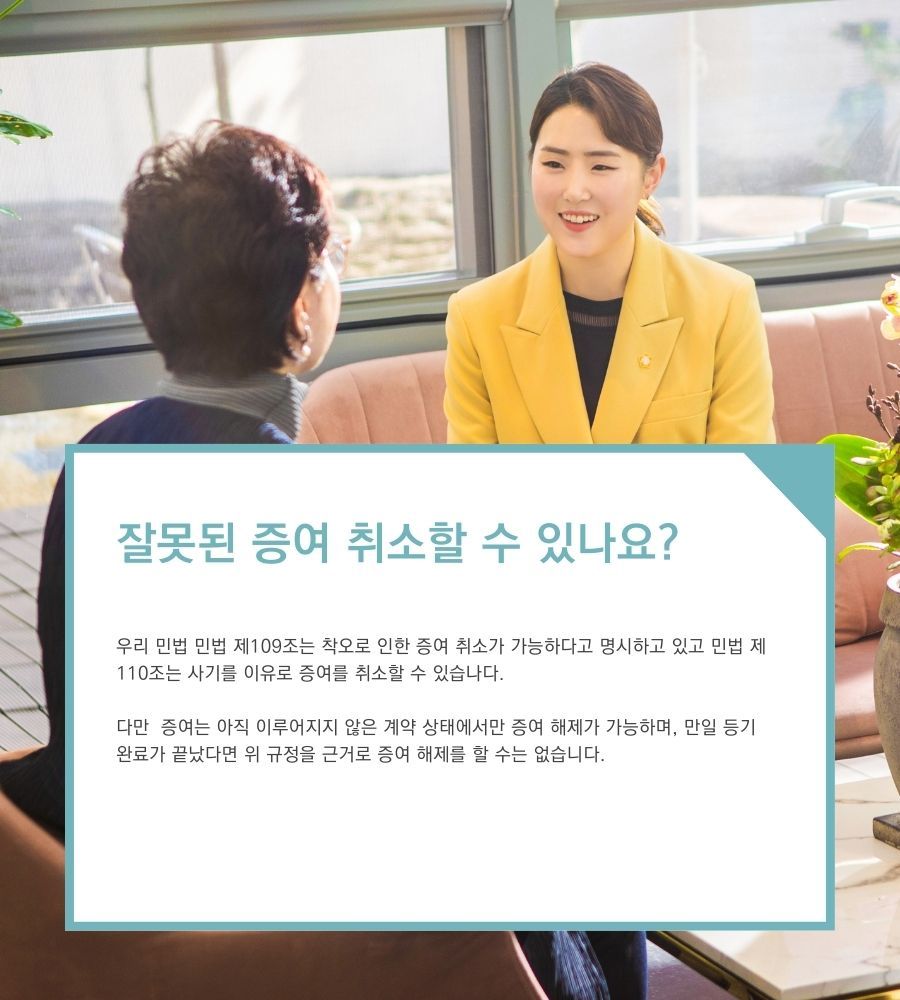 우리 민법 민법 제109조는 착오로 인한 증여 취소가 가능하다고 명시하고 있고 민법 제110조는 사기를 이유로 증여를 취소할 수 있기 때문입니다.