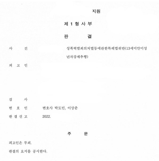선고일, 의뢰인은 기쁨과 동시에 안도의 눈물을 흘렸고 사건이 종료된 후에는 허위로 이 사건을 꾸며 낸 의뢰인에 대하여 무고죄 고소, 민사상 손해배상청구, 형사변호사선임료에 대한 (국가에 대한) 형사보상청구 등 조력을 계속적으로 이어나갈 예정입니다.