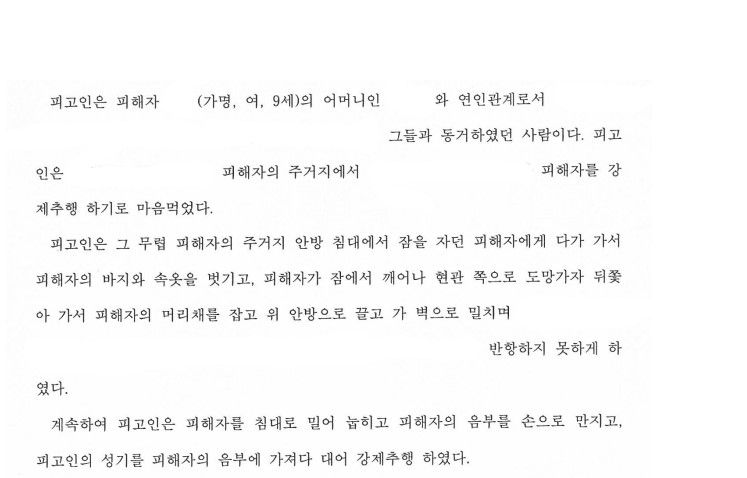 처음 고소사실은 의뢰인이 동거녀의 딸을 강간하였다는 것으로 차마 입에도 담지 못할 내용의 고소였습니다.