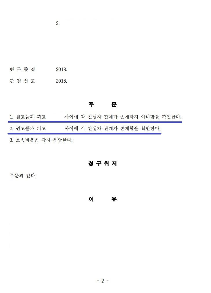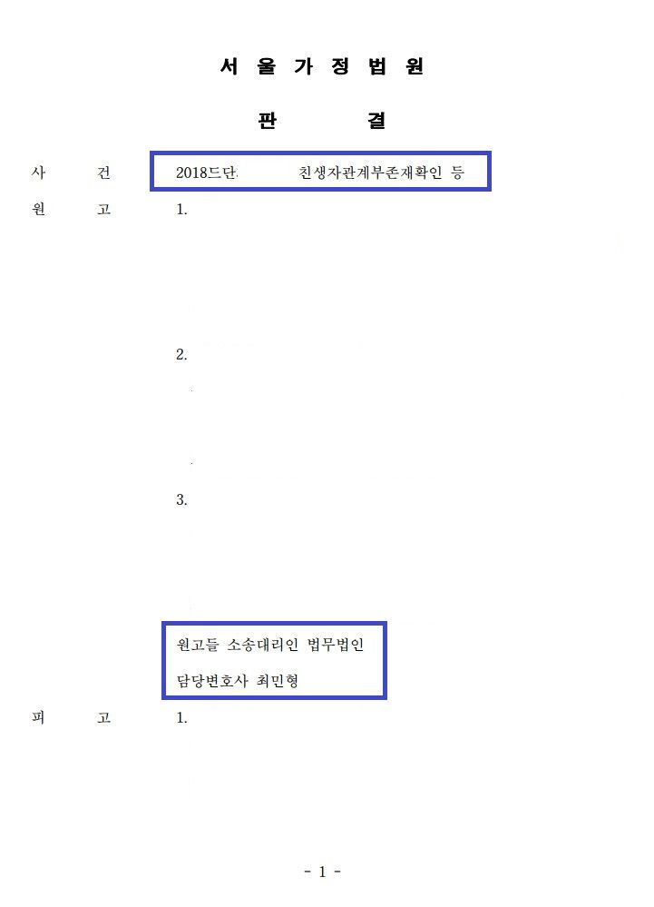 최민형 변호사는 의뢰인들과 친모의 유전자 검사결과를 근거로 친생자 관계라는 점을 주장·입증하였고, 담당 재판부는 의뢰인들의 청구를 모두 인용하였습니다.