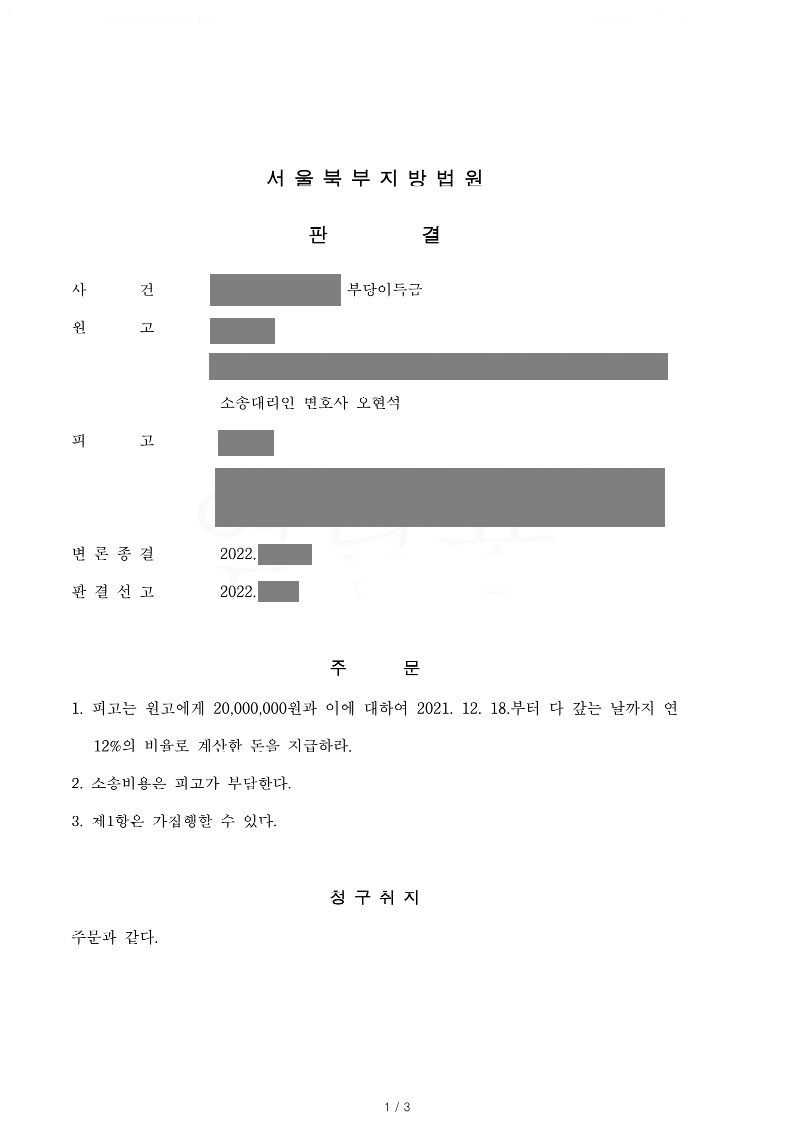 원고는 본 변호사와 상담 후 피고의 부동산에 대하여 가압류를 진행하면서 동시에 가계약금에 대한 부당이득금반환청구의 소를 제기하였습니다.