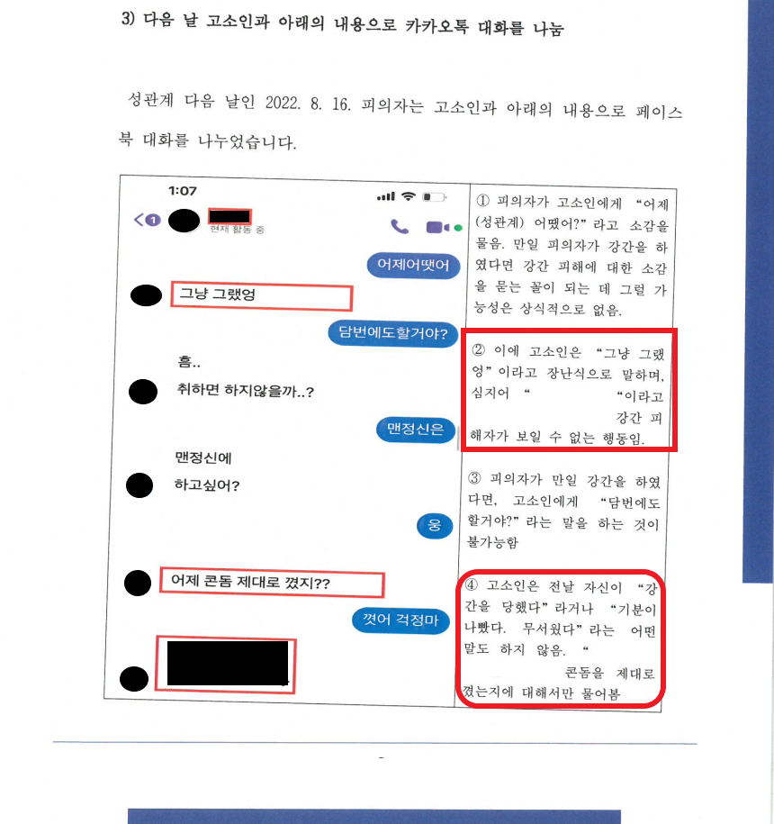⑥ B는 "무서워서 성관계 거절의 의사표현을 못한거지”라고 하나, 지극히 B의 주관적인 감정에 불과함.