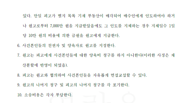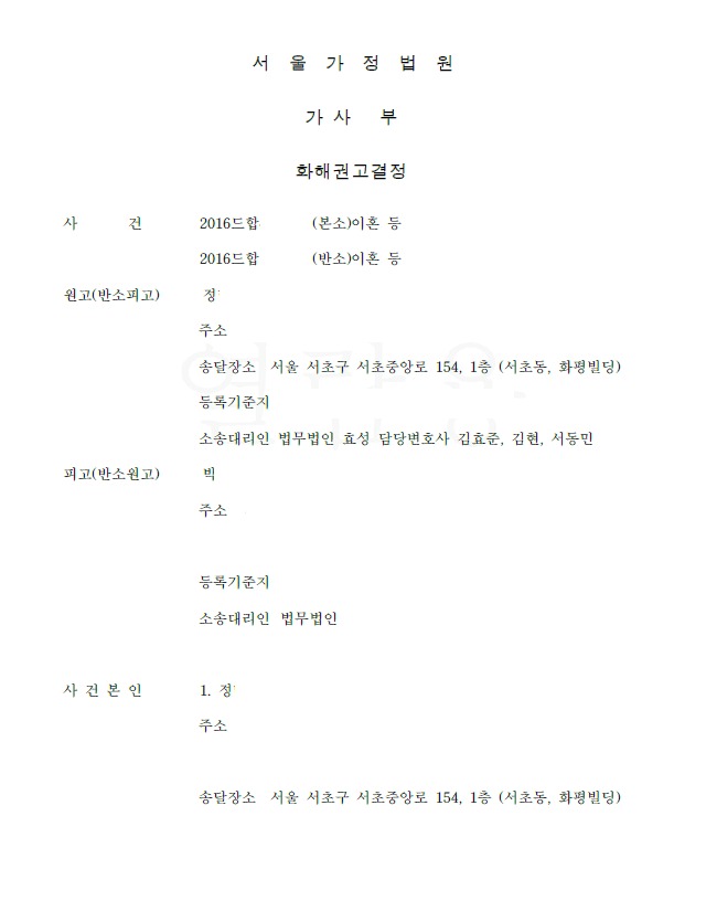 저는 의뢰를 받고 즉시 아내를 상대로 재판상 이혼 청구를 하면서 아내의 위 부정행위를 모두 주장 입증하였고, 이러한 상황에서 당연히 의뢰인이 아이들의 친권 및 양육권을 가져야 하며, 재산분할로서 아내 명의로 된 부동산의 1/2 지분을 넘겨받거나 그에 상응하는 금원을 받아야 한다고 주장하였습니다. 법원은 저희의 주장을 모두 받아들이는 화해권고결정을 내렸고 확정되었습니다.