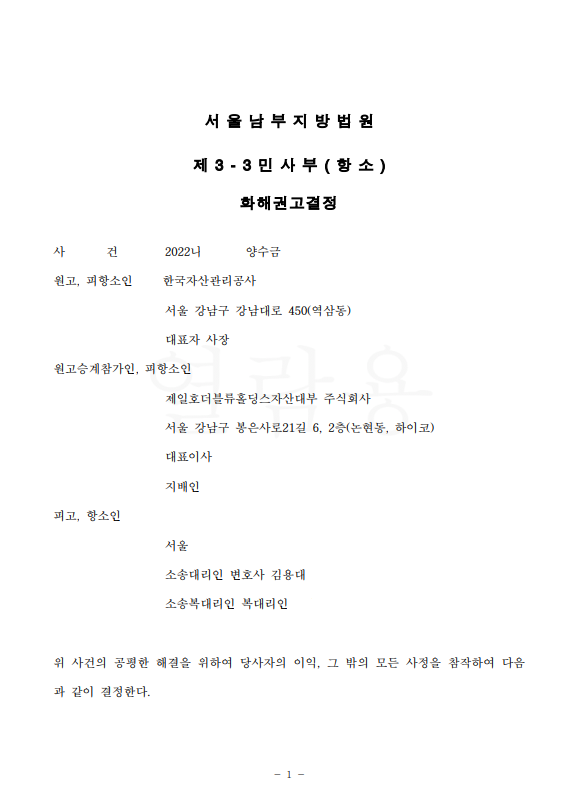 아래에서는 제일호더블류홀딩스자산대부 주식회사 양수금 청구에 대한 추완항소 조정사례에 관하여 말씀드리겠습니다.
