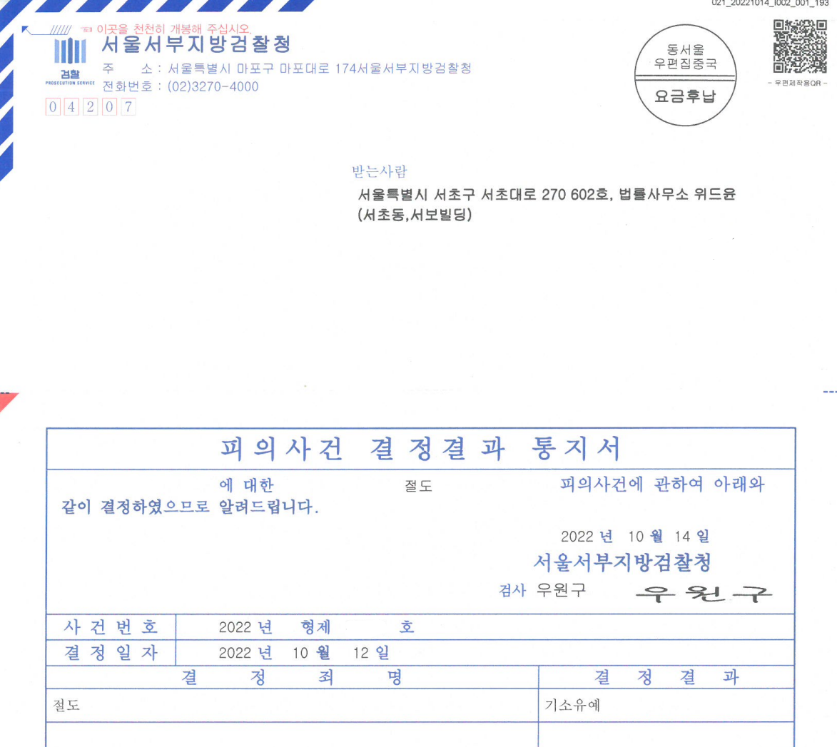 국내 굴지의 대기업에 다니시는 의뢰인께서 절도 사건으로 피의자가 되어 고민하시다가 대한변협 등록 형사전문