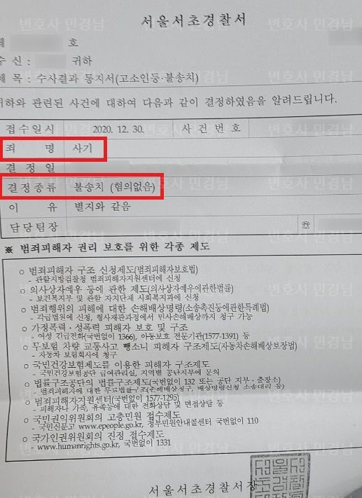 본 변호인의 위와 같은 주장으로 수사기관을 설득시킬 수 있었고, 조기에 불송치 결정으로 사건을 종결할 수 있었습니다. 이 사건과 같이 동업을 하는 경우 아무리 신뢰관계에 있다고 하더라도 변호사의 조력을 받아 계약서를 분명히 하는 것이 좋겠고, 문제가 되는 경우 전문성과 경험이 있는 변호사를 신속하게 찾아 도움을 받는 것이 매우 중요하다고 하겠습니다.