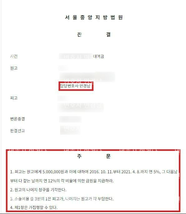 본 사건에서 일부이긴 하지만 청구금액의 일부인 500만원을 인정받을 수 있었습니다. 비록 큰 규모의 사건은 아니었지만 일부라도 법원의 인정을 받고자 노력했던 것이 받아들여져 오히려 기억에 남았던 것 같습니다.