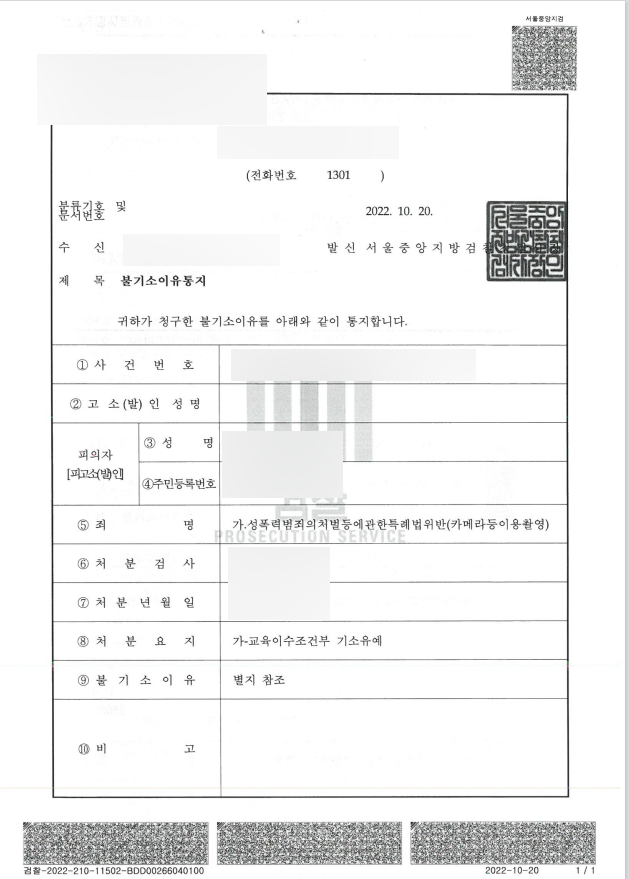 카메라등이용촬영죄로 고소되었고, 무려 세 차례에 걸쳐