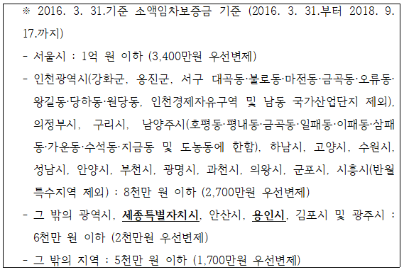 즉, B은행은 2017. 6. 20. 근저당권등기를 마친 담보물권자인데, 위 시점의 세종시의 소액임차보증금 기준은 6천만 원 이하이므로, 보증금이 9천만 원인 A는 소액임차인에 해당하지 않는다는 것입니다.