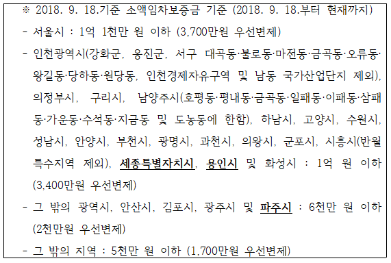 위 조항은 현재까지 여러 차례 개정을 통해 보증금액이 변경되어 왔습니다. 최근 소액임차인의 기준은 아래와 같습니다.
