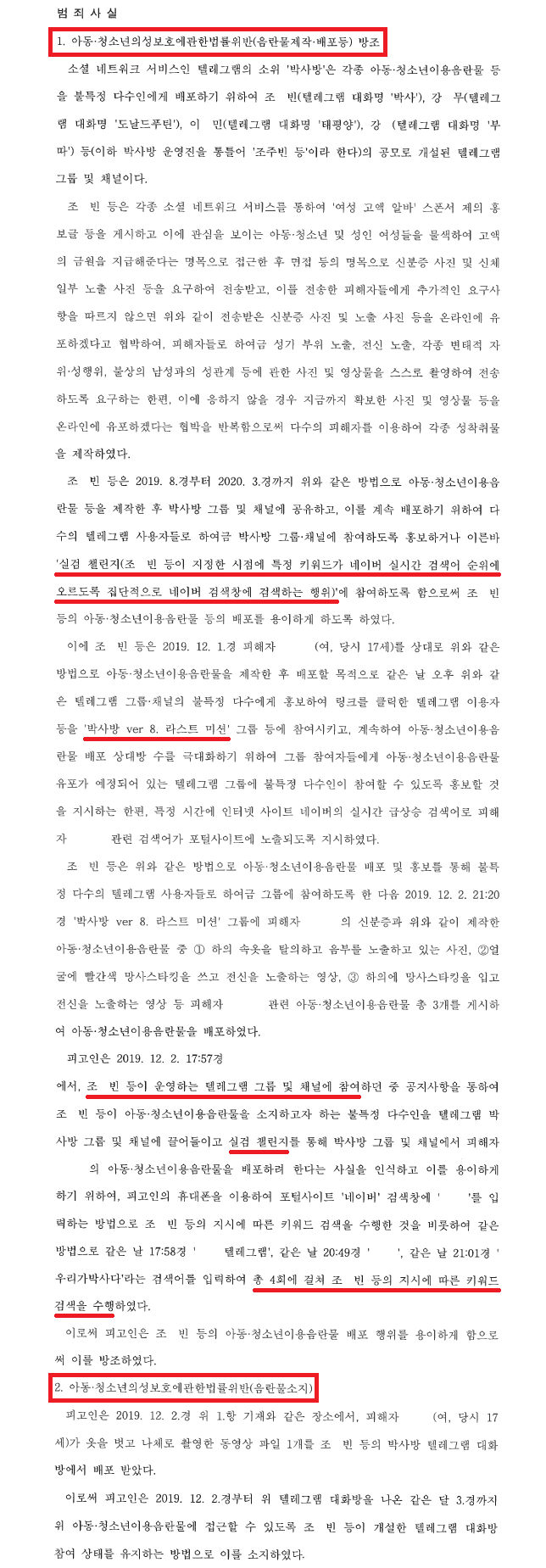 A씨는 2019. 12. 2.경 '박사방' 텔레그램 그룹 및 채널('박사방 ver 8. 라스트 미션')에 참여하던 중, '박사방' 운영진의 지시에 따라 키워드 검색을 총 4회 수행하고 인증하였습니다.