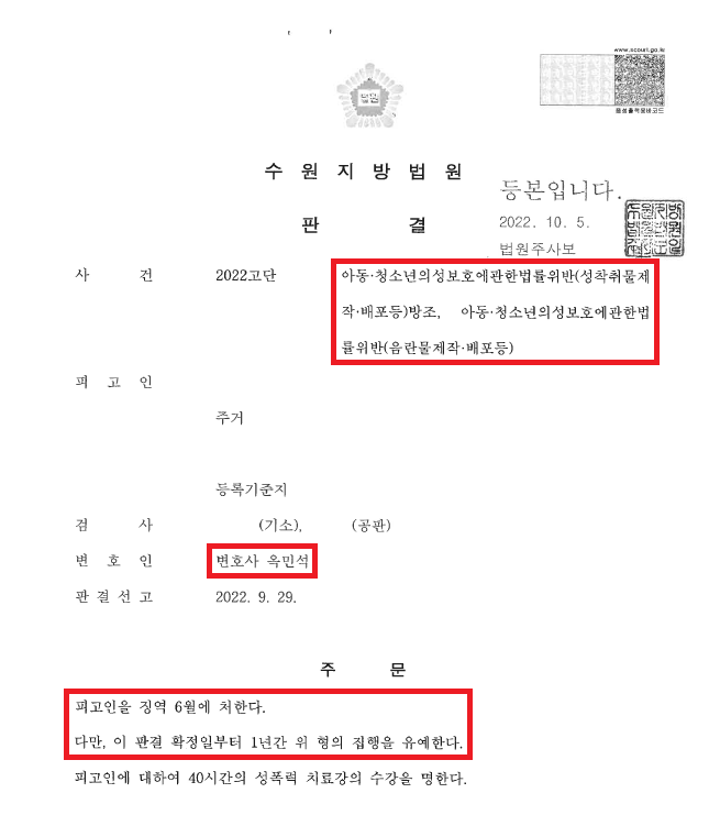 이러한 저의 조력을 바탕으로 A씨는 사회적으로 큰 이슈가 되고 있는 '박사방'에 참여하여 키워드 검색을 하고 인증까지 하며 적극 가담하였음에도 불구하고 징역 6월, 집행유예 1년을 선고받음으로써 법이 허용하고 있는 가장 짧은 집행유예로 마무리할 수 있었습니다.