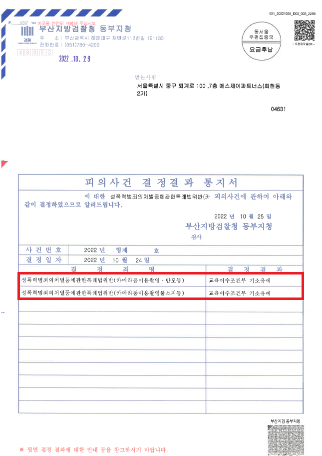 이러한 저의 조력을 바탕으로 A씨는 최근 '윤XXX'의 '돈XXX' 불법촬영물 사건에 대해 매우 강하게 처벌하고 있음에도 불구하고 '기소유예' 처분을 받음으로써 성범죄 전과자가 될 위기에서 벗어날 수 있었습니다.