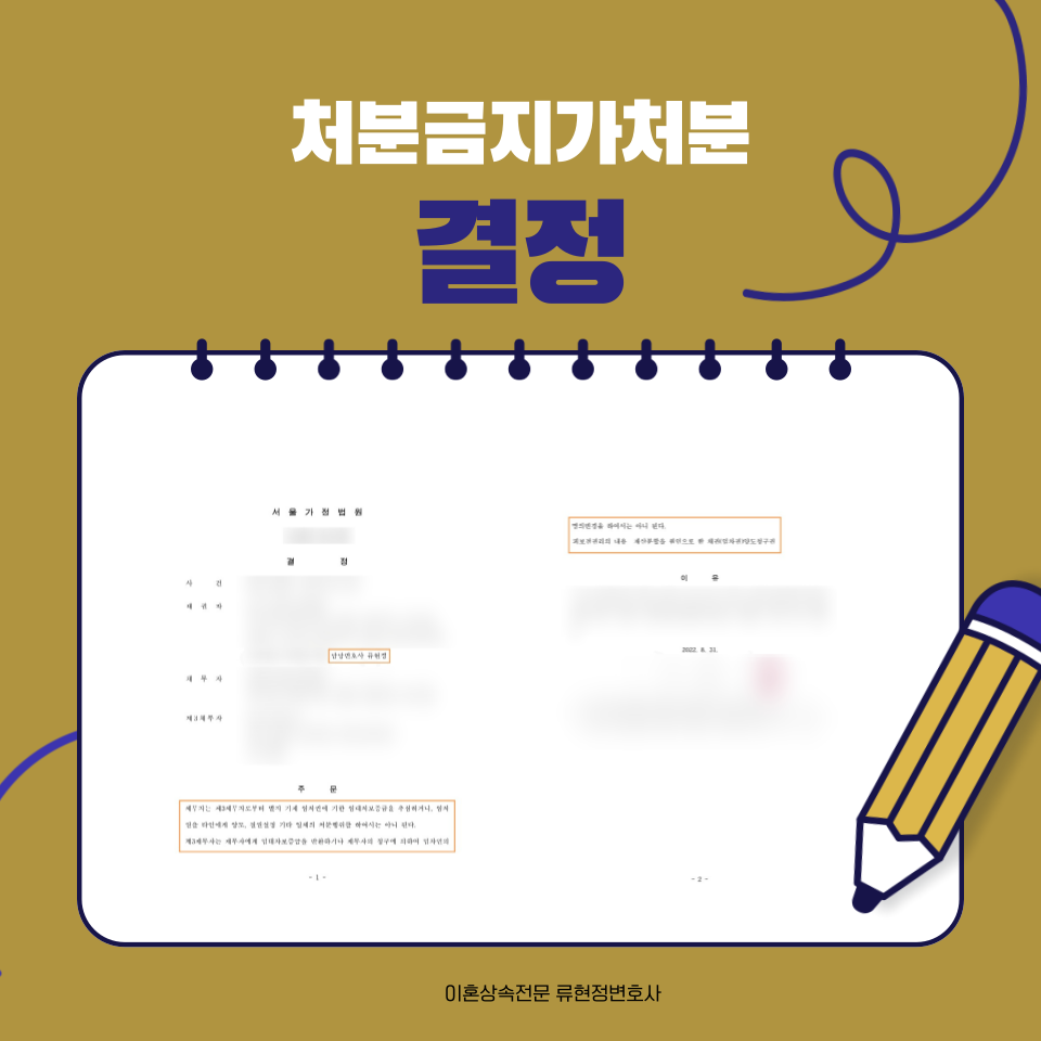 이혼 소송에서 처분금지가처분은 생각보다 흔한 일입니다. 그만큼 필요성이 잘 알려지다 보니 비교적 간단한 일로 받아들이고 직접 신청하시는 분들도 계십니다. 그러나 직접 신청 시 기각 또는 보정명령을 받게 될 가능성이 큽니다. 이로 인해 재신청하거나 보정하면서 시기를 놓치는 경우도 많죠. 이때 동일한 사정에 기하여 동일 내용의 보전처분 신청을 하면 보전의 필요성이 부정될 수 있습니다. 따라서 처음부터 저희 이혼전담센터 률을 통해서 가압류, 가처분 신청부터 재산분할에까지 도움을 받아보시는 것을 권장합니다. 이혼을 하기 전에도 가압류, 가처분 신청을 진행할 수 있고 이혼 소송을 하면서 함께 신청해도 됩니다만, 어떤 시기에 하더라도 개인이 직접 준비하는 일은 없으시기 바랍니다.