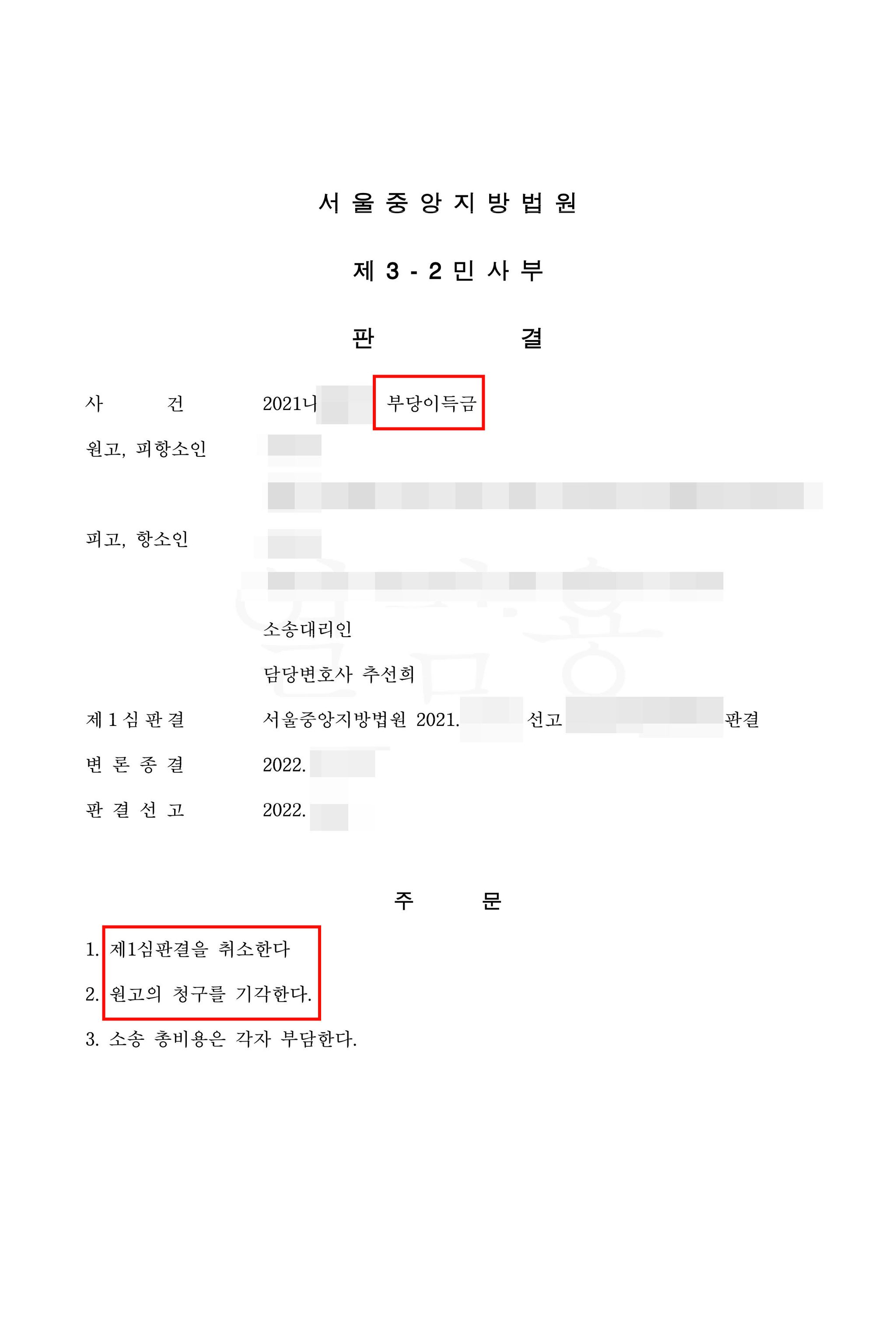 그래서 1심과 마찬가지로 2심에서도 의뢰인의 손을 들어주었습니다.